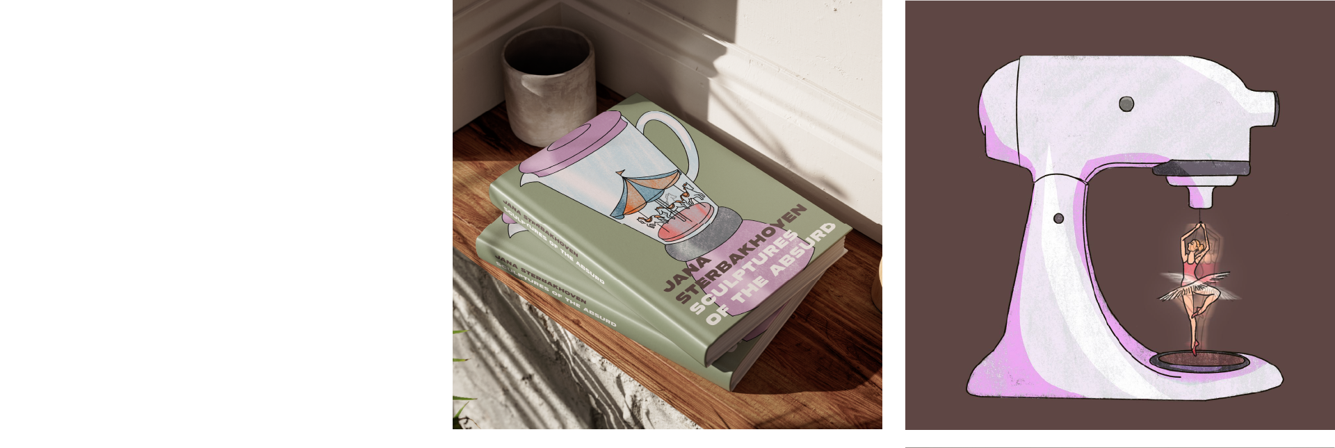 Usando el principio dadá del absurdo diseñé portadas para una colección de libros de arte. Inspiradas por Jana Sterbak, Elsa von Freytag-Loringhoven y Marcel Duchamp. Asigné las ilustraciones y títulos a cada artista, correspondiendo con su estilo y sus obras.